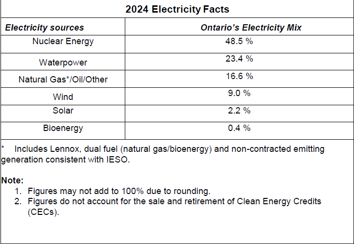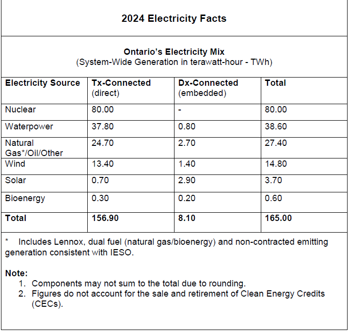 Ontario's System-Wide Electricity Supply Mix | 2024 Data